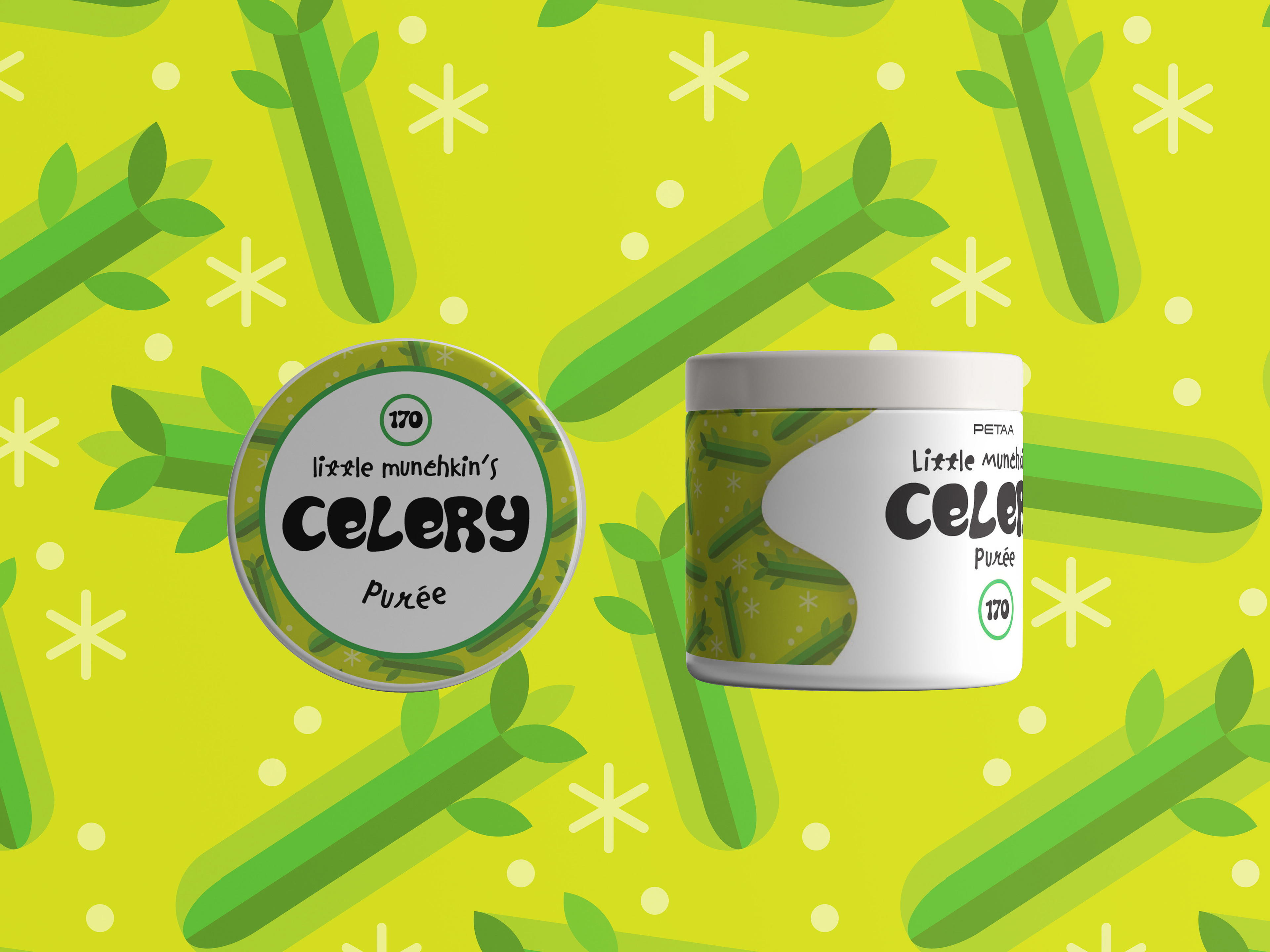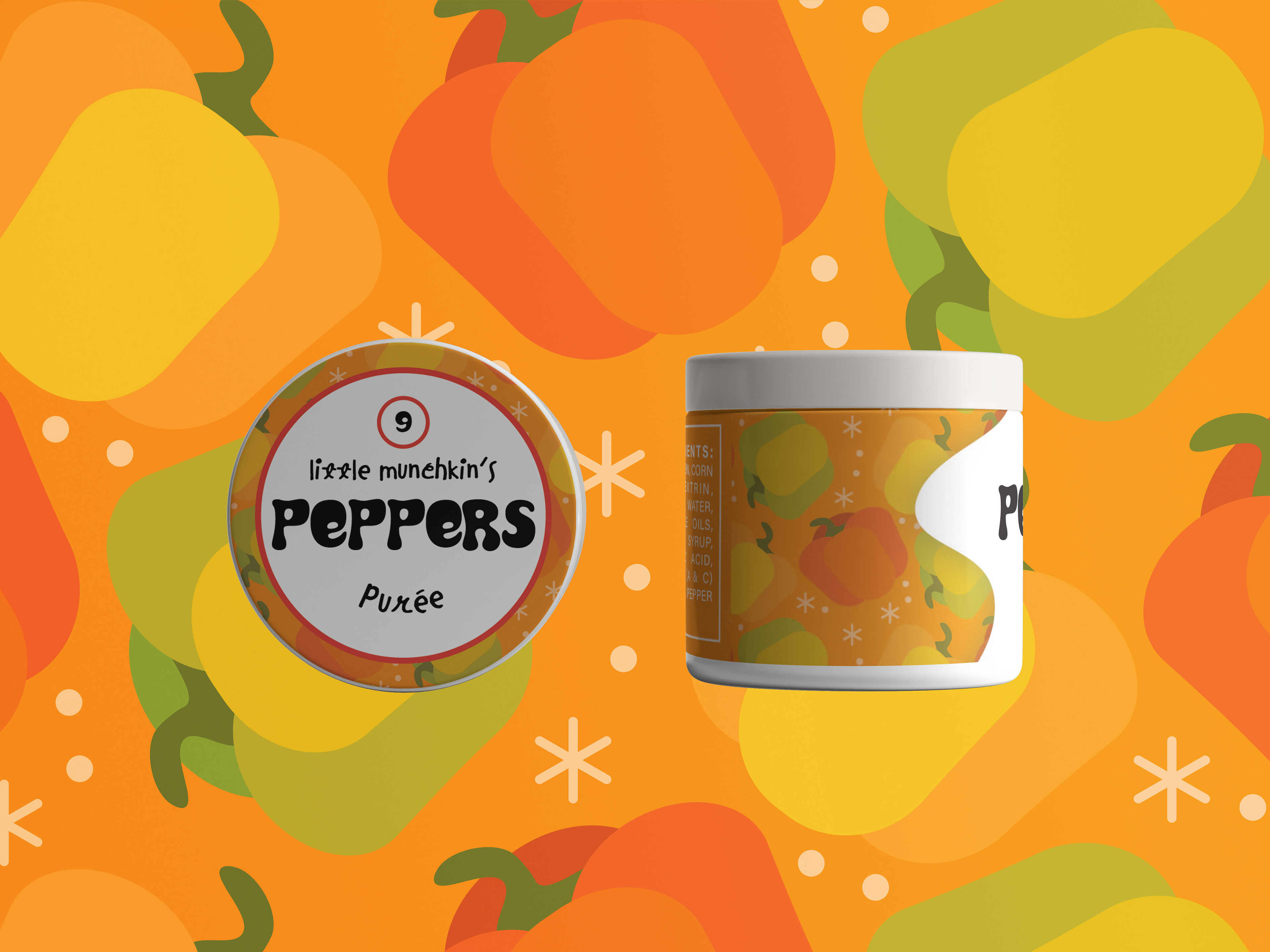 For one of the escape rooms, I was tasked with making baby food jar labels. We wanted 9 distinct flavors. Some of them could be odd, as these were made by aliens, and so for comedic effect we added in some vegetables like celery and onions. I created some flat icons for each flavor that I then used to make a tile pattern, and i chose funky and almost childish fonts for the typography.